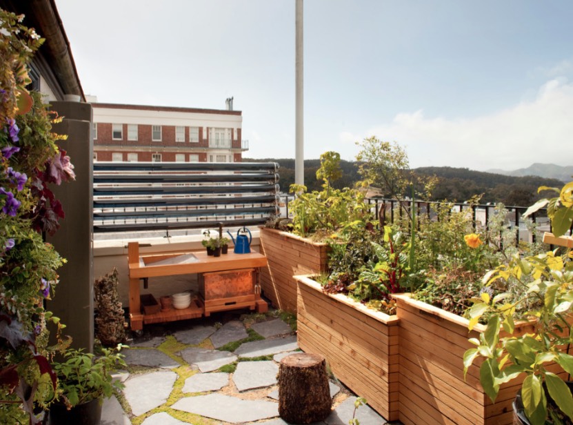Sân thượng của một ngôi nhà ở San Francisco biến thành vườn trên mái đẹp mắt với rất nhiều loại cây, hoa.