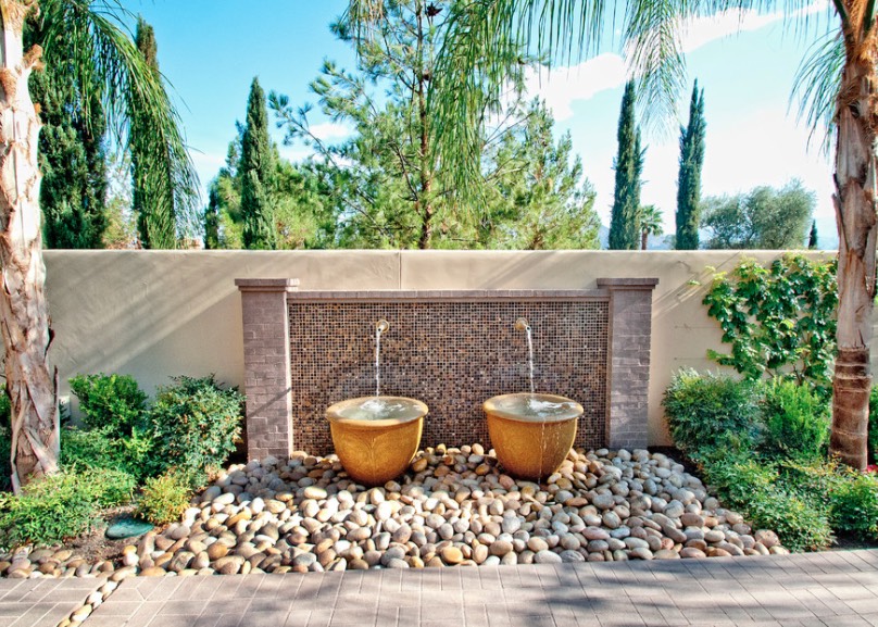 Thêm một phần tiểu cảnh nước sẽ làm cho khu vườn trở nên đặc biệt hơn và tăng thêm sự tự nhiên, sôi động. Có nhiều cách để "đưa nước" vào sân vườn như tạo tiểu cảnh đài phun nước, hồ cá, thác nước, hoặc cả tiểu cảnh hòn non bộ...